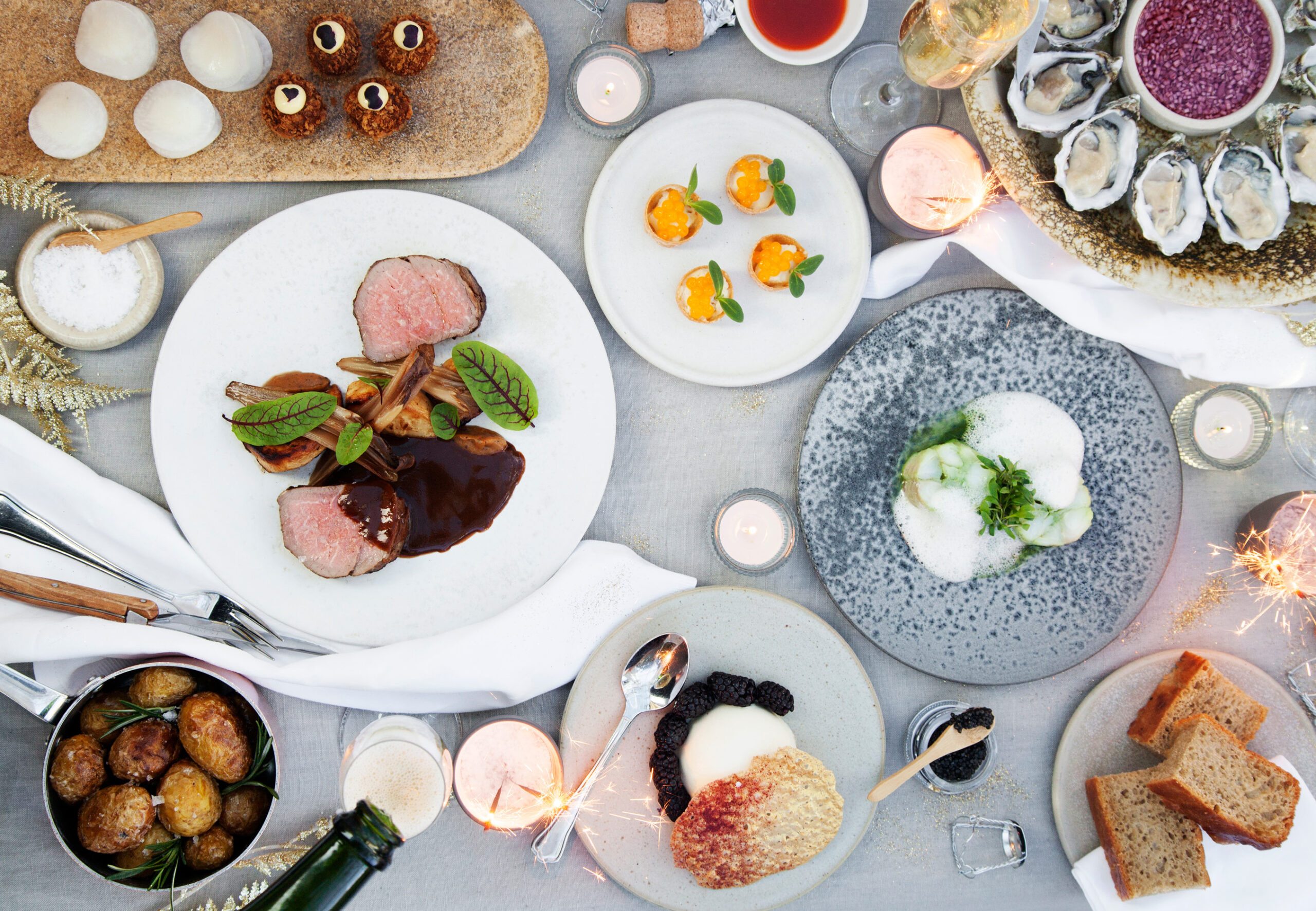 Traditionen tro har vi kreeret en nytårsmenu, som gør det nemt at samle gæsterne derhjemme og fokusere på det gode værtskab. Årets nytårsmenu er sammensat af skovkøkkenets køkkenchef og består af 3x snacks & 3x retter (forret, hovedret og dessert). Ønsker I at gå all-in, kan der også tilkøbes østers, kaviar, kransekage samt vine afstemt menuen.